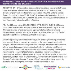 255,000+ Teachers and Education Workers Unite in Province-wide Day of Action Read More » April 27, 2026